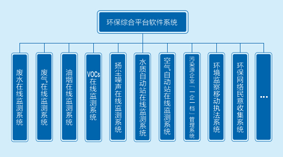 目前已研發(fā)廢水在線監(jiān)測系統(tǒng)、廢氣在線監(jiān)測系統(tǒng)、油煙在線監(jiān)測(監(jiān)控)系統(tǒng)、VOCs在線監(jiān)測系統(tǒng)、揚(yáng)塵噪聲在線監(jiān)測系統(tǒng)、水質(zhì)自動站在線監(jiān)測系統(tǒng)、空氣自動站在線監(jiān)測系統(tǒng)、污染源企業(yè)“一企一檔”管理系統(tǒng)、環(huán)境監(jiān)察移動執(zhí)法系統(tǒng)、環(huán)保網(wǎng)絡(luò)民意收集系統(tǒng)等多個(gè)應(yīng)用子系統(tǒng)。